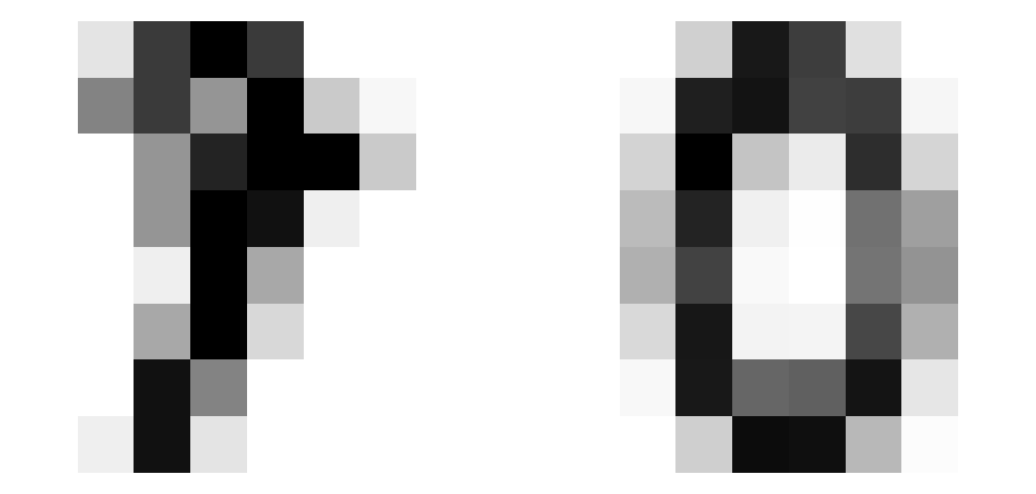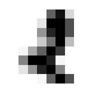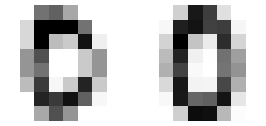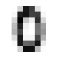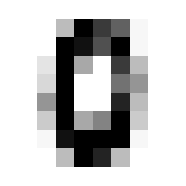 And it looks like the ‘data’ entity is a list of one dimensional vectors, listing out the 64 pixels of each image, whereas the ‘images’ entity is the same info already organized into the 8x8 array of pixels.