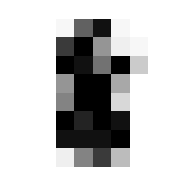 contains 10 images, each 8 by 8 pixels, one image for each ‘average’ digit. Meanwhile train